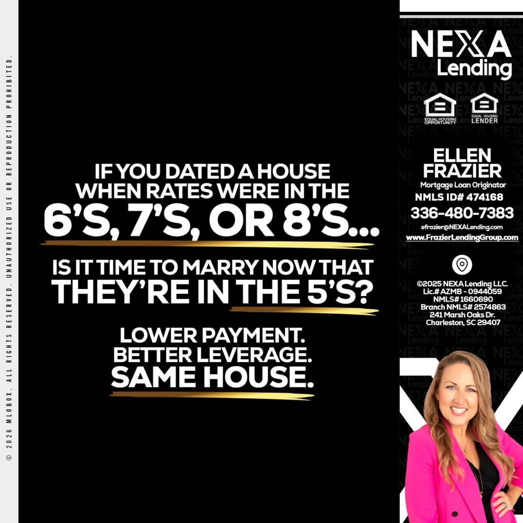 Hi, my name is Ellen Frazier. I’m a Loan Officer with Frazier Lending Group empowered by Nexa Lending, offering personalized mortgage solutions, fast customized quotes, great rates and service with integrity.