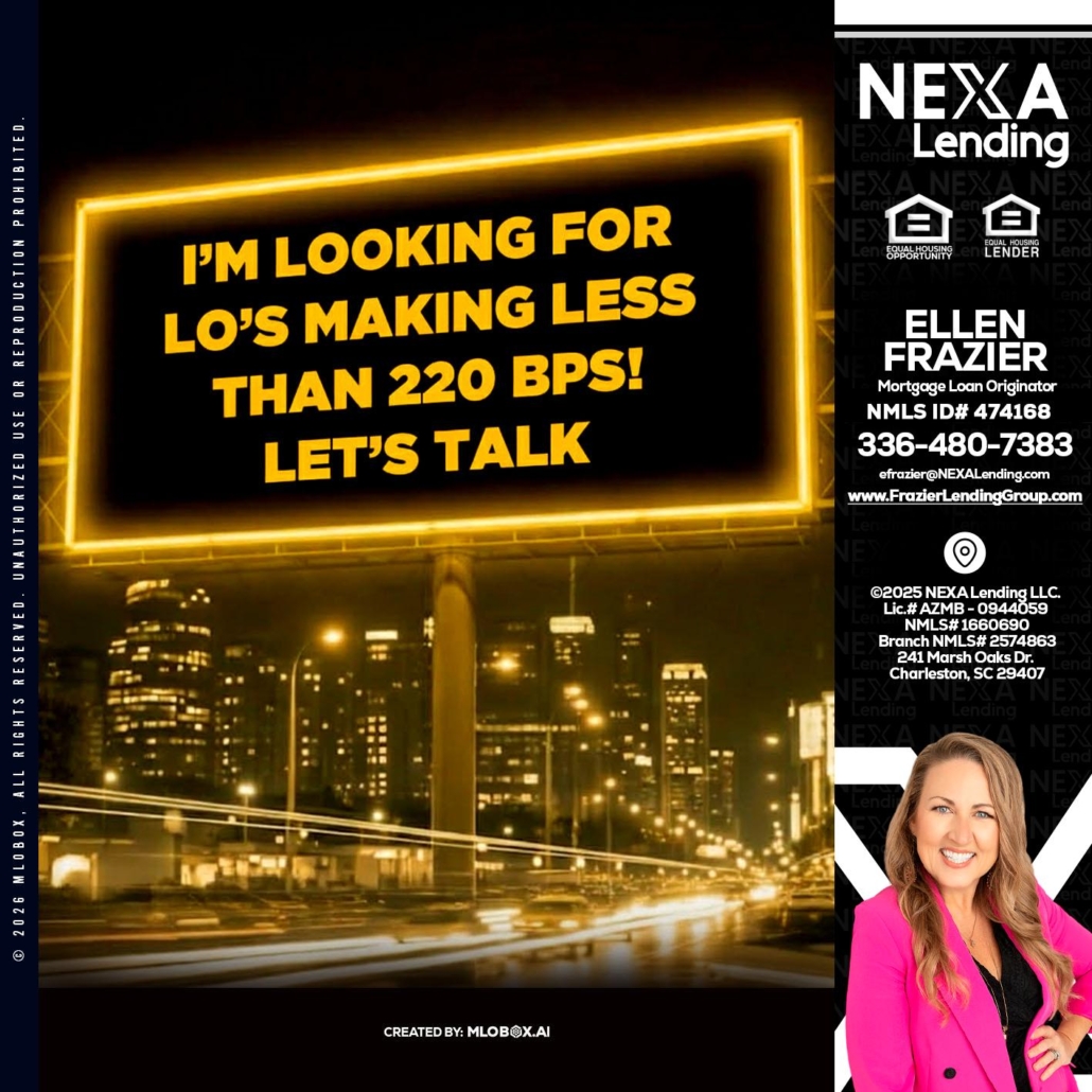 Hi, my name is Ellen Frazier. I’m a Loan Officer with Frazier Lending Group empowered by Nexa Lending, offering personalized mortgage solutions, fast customized quotes, great rates and service with integrity.