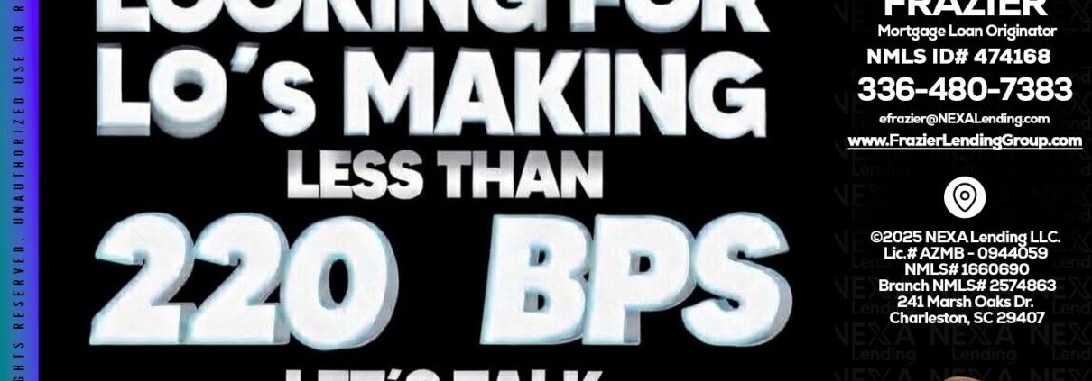LOOKING FOR - Ellen Frazier -Branch ManagerHi, my name is Ellen Frazier. I’m a Loan Officer with Frazier Lending Group empowered by Nexa Lending, offering personalized mortgage solutions, fast customized quotes, great rates and service with integrity.