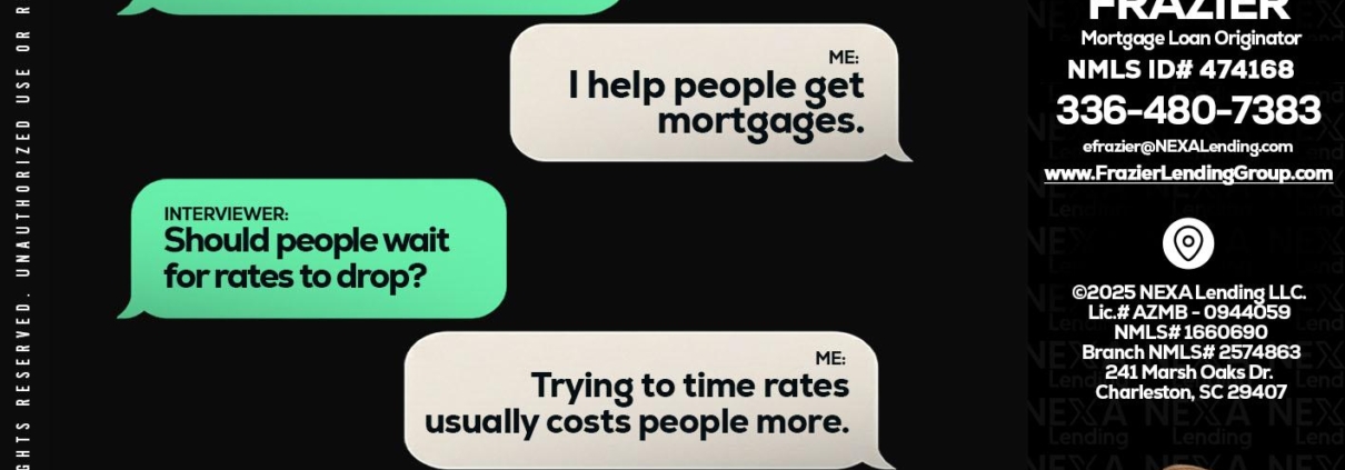 rapid fire - Ellen Frazier -Branch ManagerHi, my name is Ellen Frazier. I’m a Loan Officer with Frazier Lending Group empowered by Nexa Lending, offering personalized mortgage solutions, fast customized quotes, great rates and service with integrity.