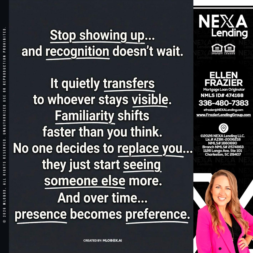 Hi, my name is Ellen Frazier. I’m a Loan Officer with Frazier Lending Group empowered by Nexa Lending, offering personalized mortgage solutions, fast customized quotes, great rates and service with integrity.